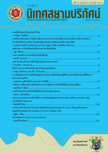 | วารสารนิเทศสยามปริทัศน์ปีที่ 13 ฉบับที่ 15 | วารสารนิเทศสยามปริทัศน์ปีที่ 12 ฉบับที่ 14 |