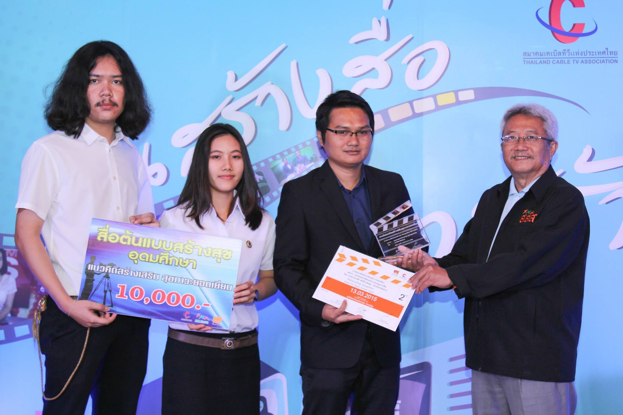 นางสาวอาจรีย์ ศักดิ์เกษตรกูล และ นายธนบูรณ์ ดีมาก นักศึกษาภาควิชาวิทยุ-โทรทัศน์-ภาพยนตร์ คณะนิเทศศาสตร์ มหาวิทยาลัยสยาม คว้ารางวัล 2 รางวัล ในโครงการประกวดสารคดีเชิงข่าว สื่อต้นแบบสร้างสุข ระดับอุดมศึกษา “รางวัลสื่อต้นแบบสร้างสุข” คือรางวัลแนวคิดสร้างเสริมสุขภาวะยอดเยี่ยม ผลงาน ชุมชนอนุรักษ์วัฒนธรรมชุมชนพูนบำเพ็ญ และ รางวัลชมเชย ผลงาน สุขภาพดีด้วยการรำไม้พลอง โครงการดังกล่าว เป็นรางวัลที่สมาคมเคเบิลทีวีแห่งประเทศไทย ร่วมกับสำนักงานกองทุนสนับสนุนการสร้างเสริมสุขภาพ (สสส.) จัดขึ้น” โดยมีอาจารย์ณัฐวุฒิ สิงห์หนองสวง และอาจารย์เจตน์จันทร์ เกิดสุข เป็นที่ปรึกษา